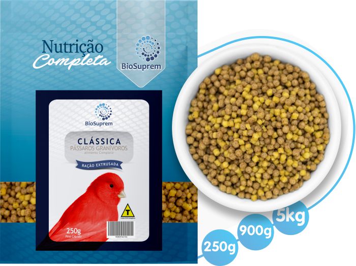 Ração extrusada para pássaros granívoros em geral, especialmente desenvolvida para fornecer a alimentação completa e substituir as misturas de sementes. Com todas as vitaminas, minerais, aminoácidos e proteínas que os pássaros precisam.