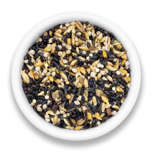 Mistura de sementes especial para Pintassilgos e Tarins, com grande variedade de grãos naturais, limpos e selecionados, preferidos por essas espécies. Alpiste selecionado, gergelim preto, gergelim branco, quinoa, perila branca, linhaça dourada, canola, senha branca francesa, milheto, níger, aveia branca descascada e erva-doce.